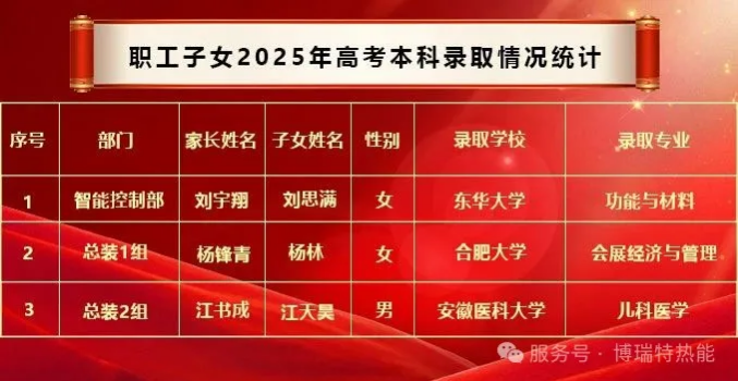 大學(xué)是一個(gè)新的起點(diǎn),也是一個(gè)充滿機(jī)遇和挑戰(zhàn)的舞臺。每一份錄取通知書,都是孩子寒窗苦讀的勛章,更是員工平衡家庭與工作、用心培育的成果。公司為員工家庭的這份喜悅深感自豪,也將始終關(guān)注員工成長,與大家共享生活中的每一份美好!再次向以上員工及家人致以最熱烈的祝賀,也祝愿所有員工家庭幸福美滿,萬事順意!